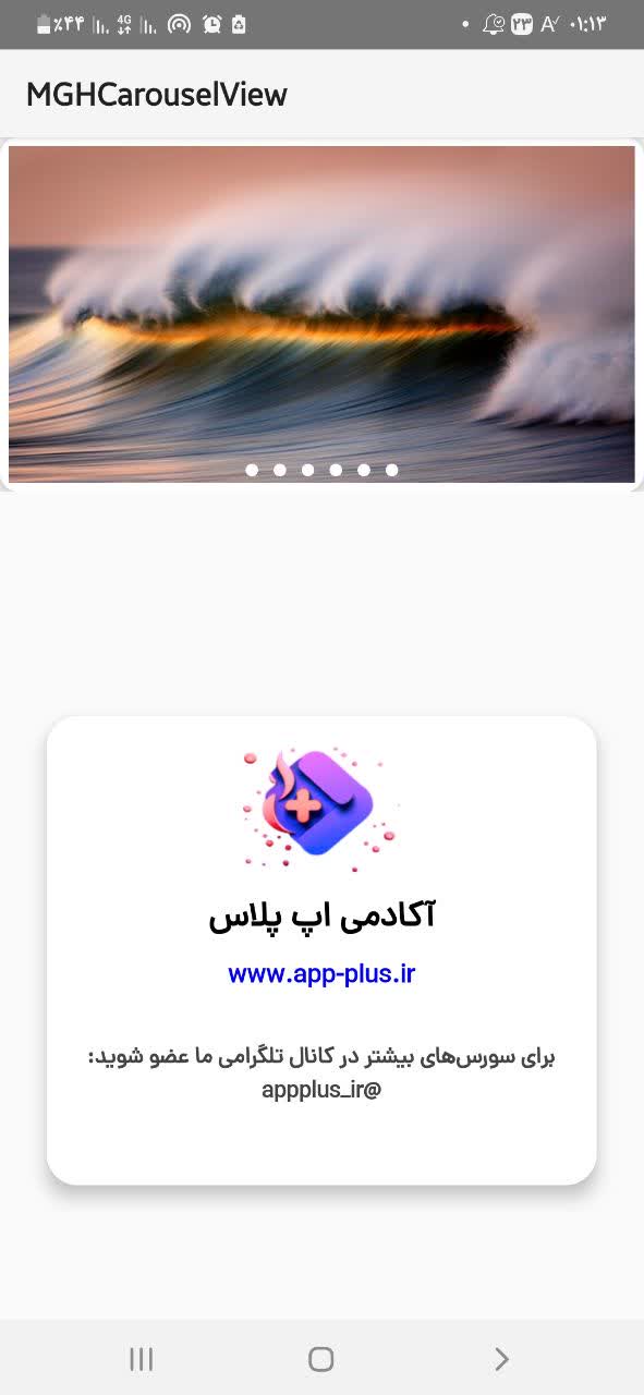 سورس MGHCarouselView یک اسلایدر حرفه‌ای برای B4A با قابلیت استفاده آفلاین و آنلاین و امکان قرار دادن متن روی اسلایدهاست. مناسب برای بنر، معرفی و نمایش محتوای گرافیکی.